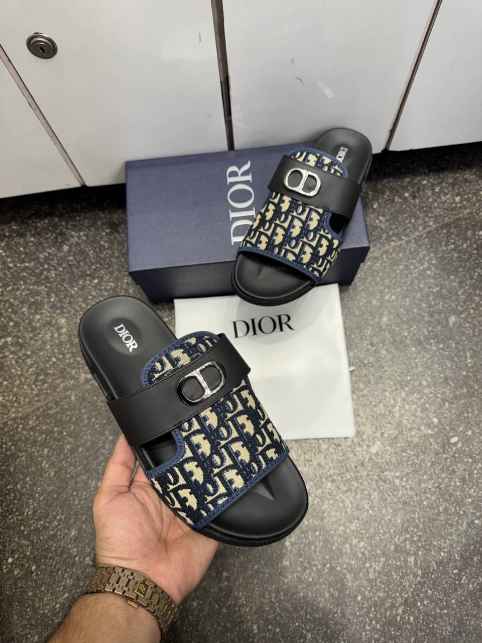 Dio.r Aqua Oblique Sandals Slides Navy Premium