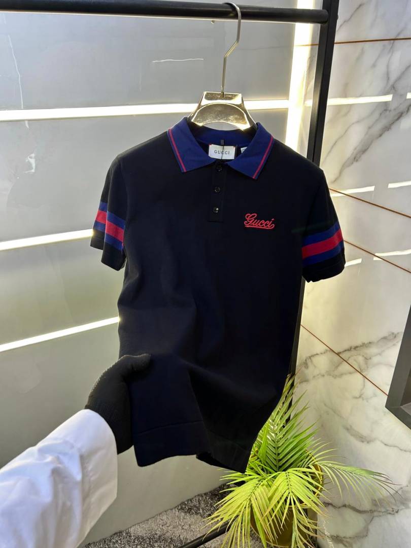 Gucc i Black Imported knitted Premium Collar Neck Polo T-shirt F3557-BL