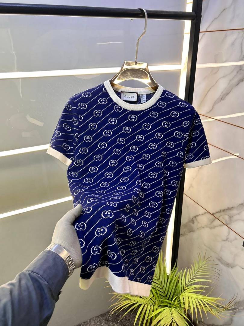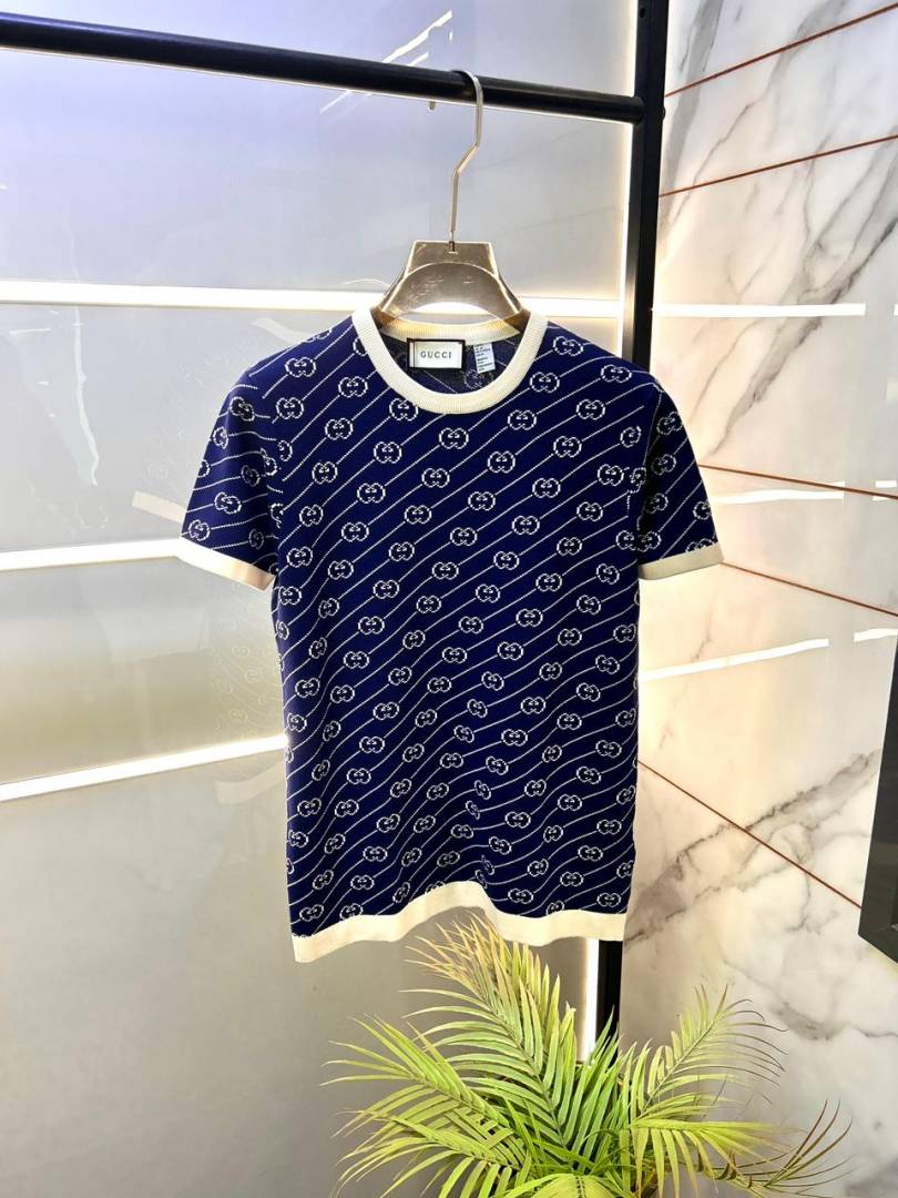Gucc i Imported Monogram Navy knitted Super Premium Round Neck T-shirt F3511-NY