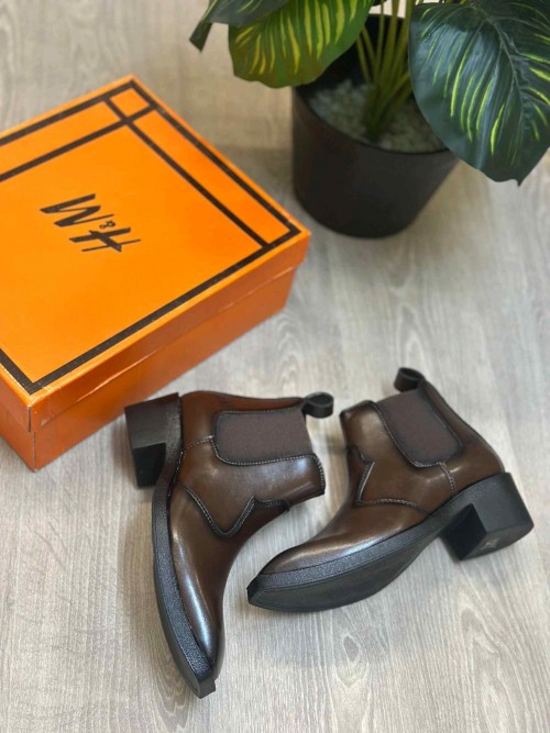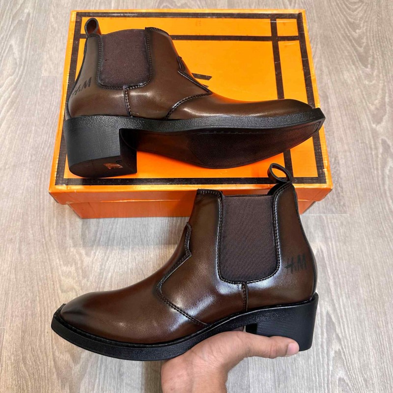 H M Cuban Heeled Brown Chelsea Ankle Boots